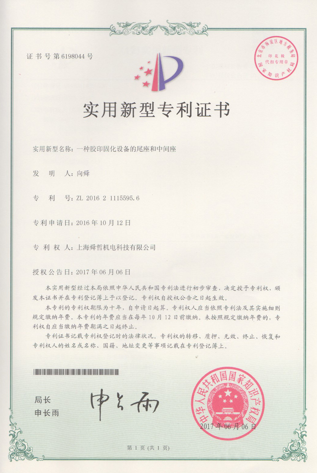 一种胶印固化设备设备的尾座和中间座